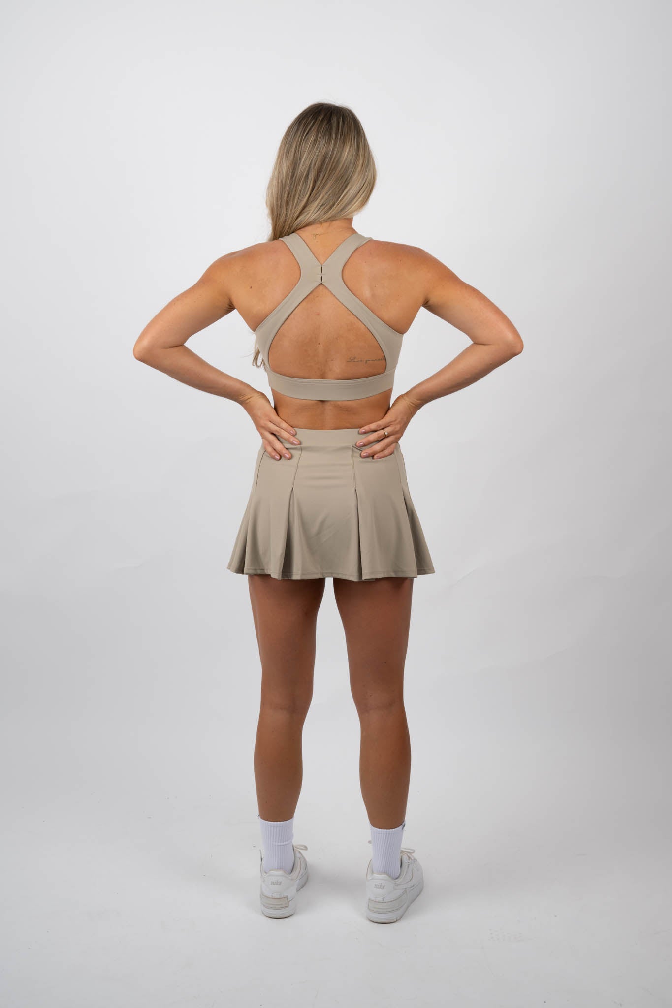 Elevate your game with the Galvis Sports 3-piece tennis and padel set, designed for athletes who demand performance and elegance on and off the court. This complete outfit includes a supportive sports bra, a lightweight pleated skirt, and a matching performance jacket – all in a sleek Beigedesign with the iconic Galvis Sports logo.